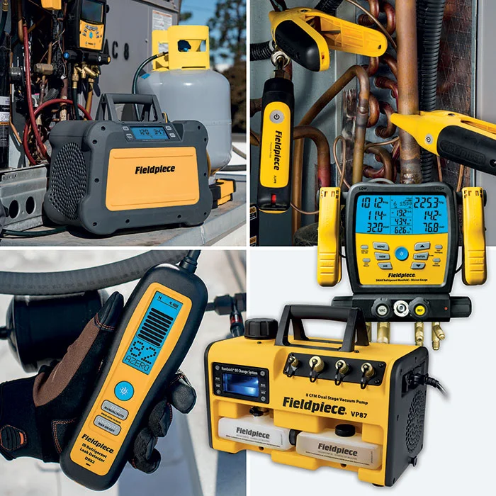 Bij werkzaamheden aan installaties met koudemiddelen maakt u gebruik van diverse apparatuur, waaronder een manifold voor de juiste drukafstellingen, een nauwkeurige temperatuurmeter met de juiste meetsondes, een afpompunit om koudemiddel in of uit een installatie te pompen, een vacuümpomp en -meter, een gecertificeerde weegschaal en een lekdetector die geschikt is voor het gebruikte koudemiddel. EURO-INDEX biedt een breed assortiment instrumenten voor het werken met koudemiddelen en wij adviseren u graag over de juiste apparatuur voor uw werkzaamheden en de typen koudemiddel waar u mee te maken hebt.