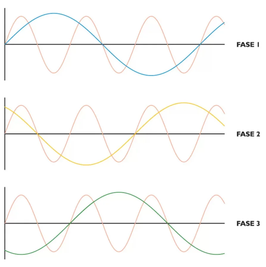 In een driefasen systeem zijn de fasen 120° ten opzichte van elkaar verschoven. De stroom in de 2de fase loopt 1/3 periode achter op de 1ste. Wanneer een stabiele, sinusvormige 50 Hz stroom door de drie fasen gaat, zal de stroom door de nulleiding 0 zijn, doordat bij samenkomst deze golfvormen elkaar elimineren.