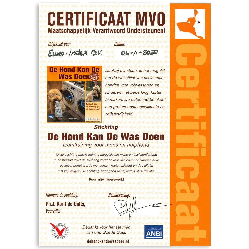 EURO-INDEX is zich bewust van haar invloed op de omgeving en vindt Maatschappelijk Verantwoord Ondernemen (MVO) bijzonder belangrijk. Wij willen graag (met u) een actieve bijdrage leveren aan een beter milieu! Dit doen wij op diverse manieren: