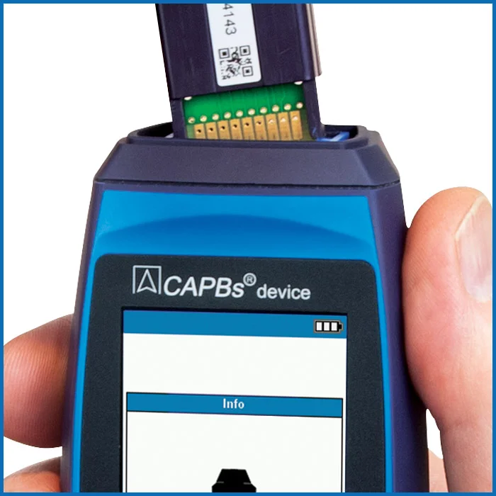 De CAPBs® device is een veelzijdige handgreep met twee aansluitmogelijkheden waarop alle sens meetmodules kunnen worden geplaatst. Deze handgreep bevat een display, drie toetsen voor bediening, Bluetooth® communicatie en een accu. Klik hier voor meer info.